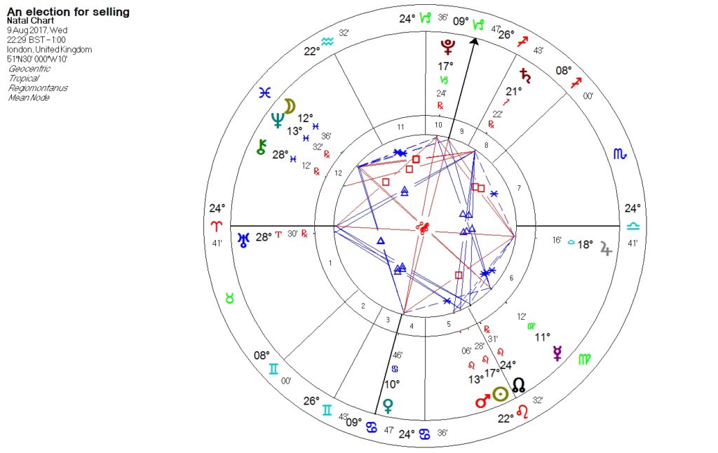 The date is 9 August and the time for London is 10:29PM. The Moon is separating from a trine to Venus and is applying to a square of Saturn. This is not ideal, and the square aspect without reception might mean some issues before the sale is completed (Bonatti says a square aspect without reception indicates obstacles and difficulty), but the sale when it completes should leave you better off.
