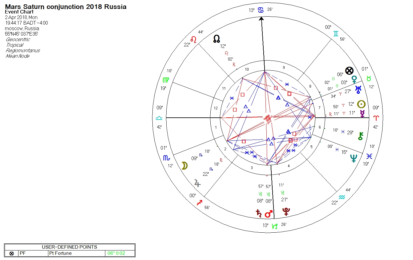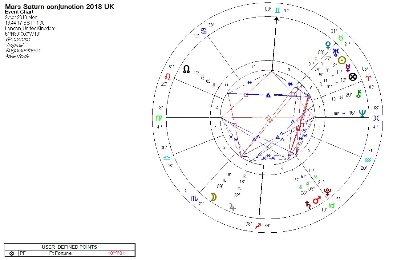 In the previous post on The Aries Ingress chart 2018 and the Mars Saturn conjunction we identified that the Mars-Saturn conjunction was due to occur on 2 April 2018, and that we would see the events indicated by this conjunction transpire as early as 27 March 2018.